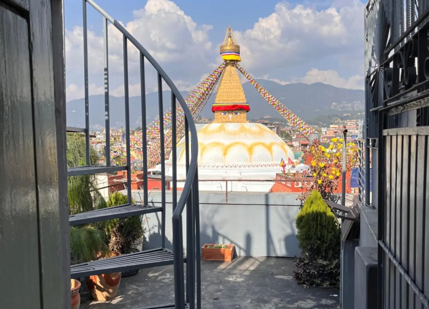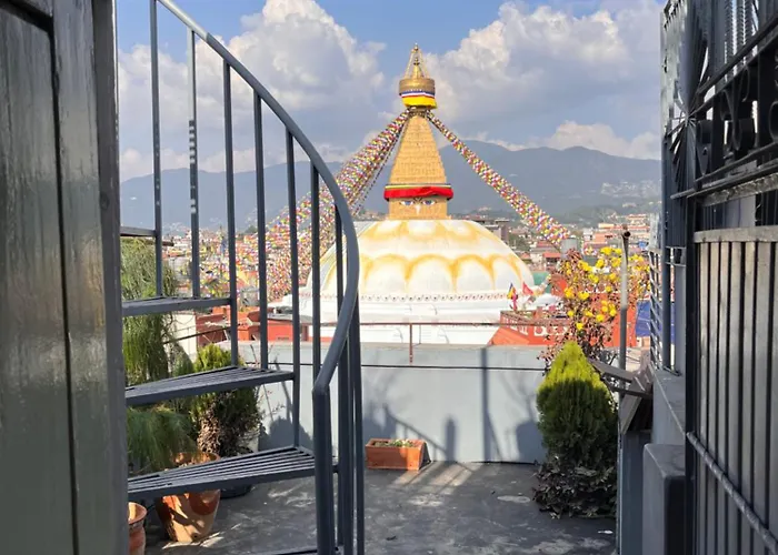 Esta pensión se encuentra en el barrio Boudhha, justo al lado del Estupa de Boudhanath. El Templo de Pashupatinath está no muy lejos del hotel, mientras que la estación de autobuses Ramhiti, está a unos 10 minutos a pie. La Plaza Durbar de Katmandú está a 6 km del Front Stupa View Katmandú.